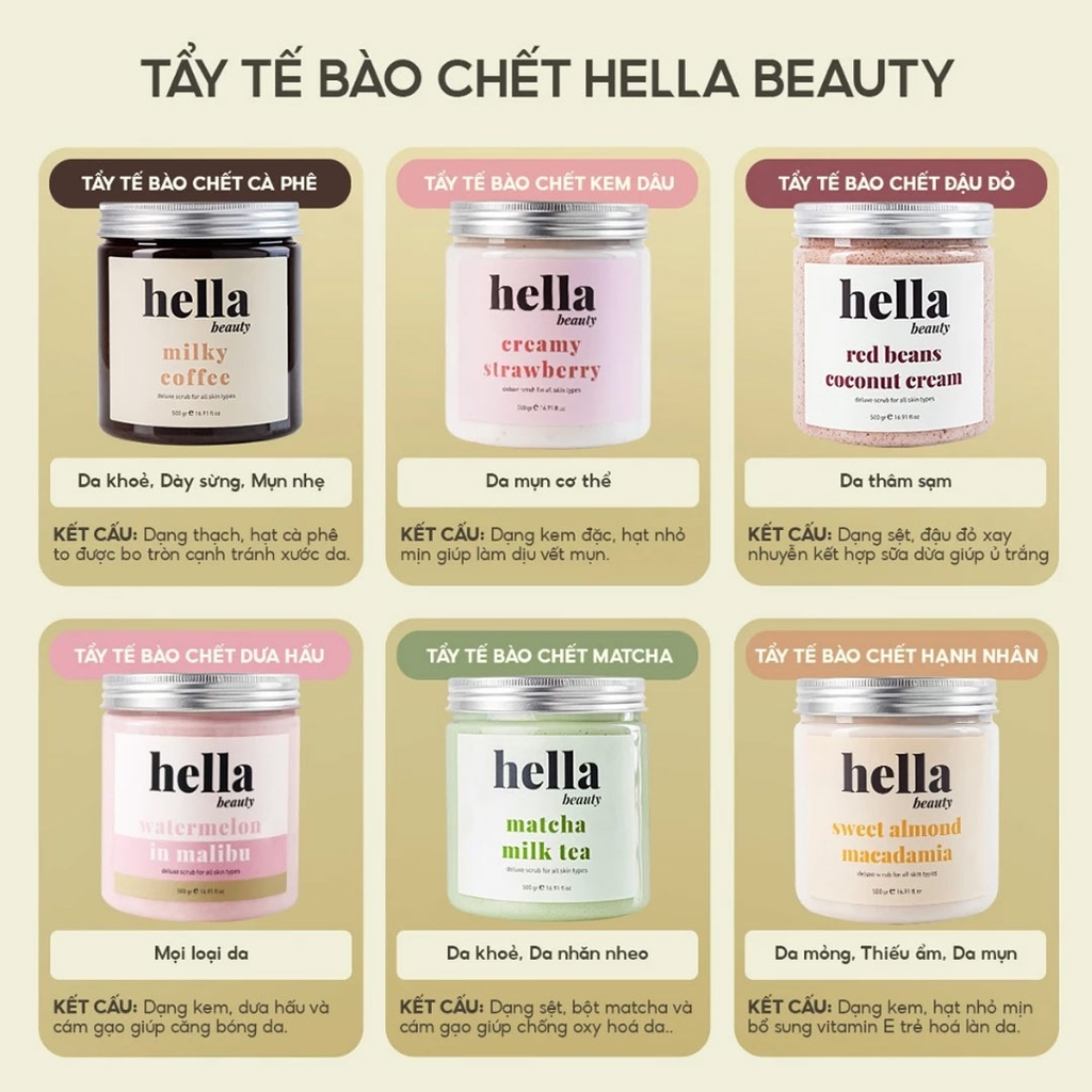 Da cơ thể cũng cần được làm sạch và tẩy tế bào chết thường xuyên để duy trì sự mịn màng, đều màu. Tẩy tế bào chết Hella Beauty 500g sẽ giúp bạn loại bỏ lớp sừng già, làm thông thoáng lỗ chân lông và hỗ trợ hấp thu dưỡng chất tốt hơn.