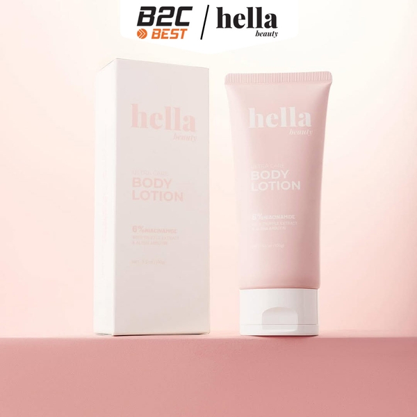 Kem body Hella Beauty chứa Niacinamide 6% và nấm Truffle, giúp da sáng mịn và đều màu.