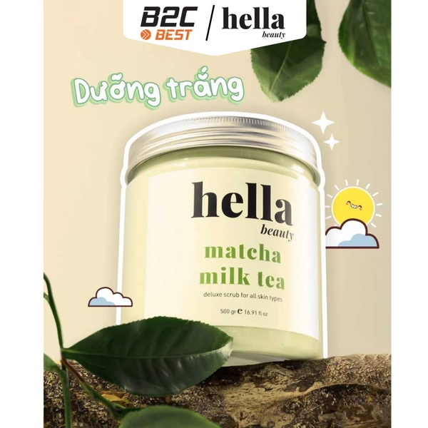 Tẩy tế bào da chết Matcha Milk của Hella Beauty mang đến trải nghiệm chăm sóc da nhẹ nhàng và thư giãn với sự kết hợp độc đáo từ matcha (trà xanh), cám gạo, hoa hồng và dầu dừa. Công thức giàu dưỡng chất cùng với AHA, BHA và Alpha Arbutin giúp loại bỏ lớp tế bào chết, thanh lọc làn da, đồng thời dưỡng sáng và duy trì độ ẩm mượt.