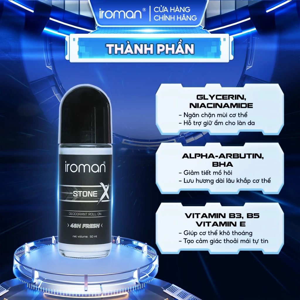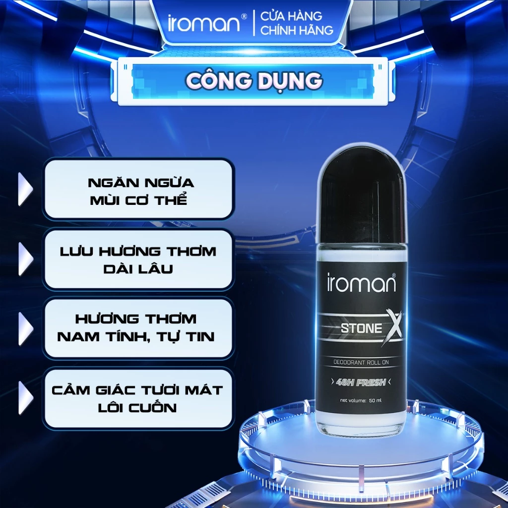 Lăn Khử Mùi IROMAN 50ML là giải pháp khử mùi dành riêng cho nam giới với khả năng giảm tiết mồ hôi – ngăn mùi cơ thể – lưu hương nước hoa Pháp suốt ngày dài. Kết hợp hoạt chất dưỡng da & công nghệ khử mùi hiệu quả, sản phẩm mang lại cảm giác thoải mái, khô thoáng và tự tin trong mọi hoạt động.