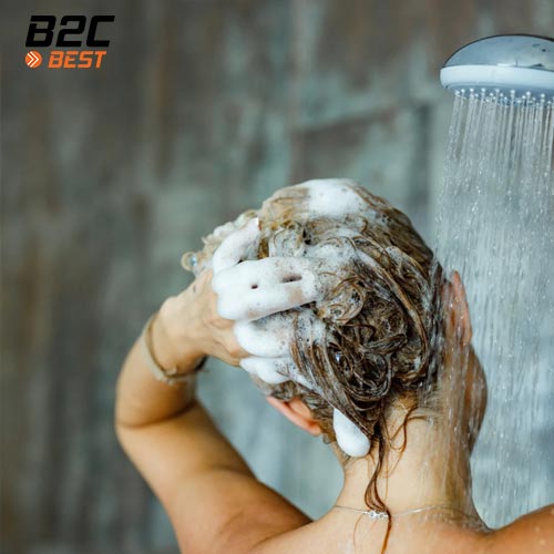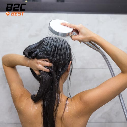 → Gội bằng nước mát hoặc ấm nhẹ khoảng 35–38°C, và đừng quên xả cuối bằng nước mát để “đóng” biểu bì tóc, giúp tóc mềm mượt hơn.