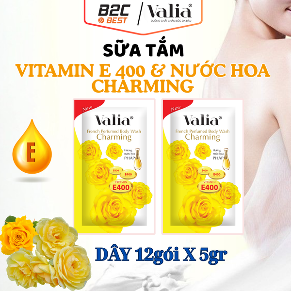 Sữa Tắm Valia Vitamin E Charming Pháp là sự kết hợp hoàn hảo giữa khả năng làm sạch nhẹ nhàng, dưỡng ẩm chuyên sâu và hương nước hoa quyến rũ chuẩn Pháp. Công thức chứa Vitamin E và chiết xuất thiên nhiên giúp nuôi dưỡng làn da mềm mại, sáng mịn, mang lại cảm giác thư giãn, tự tin và lôi cuốn sau mỗi lần tắm.