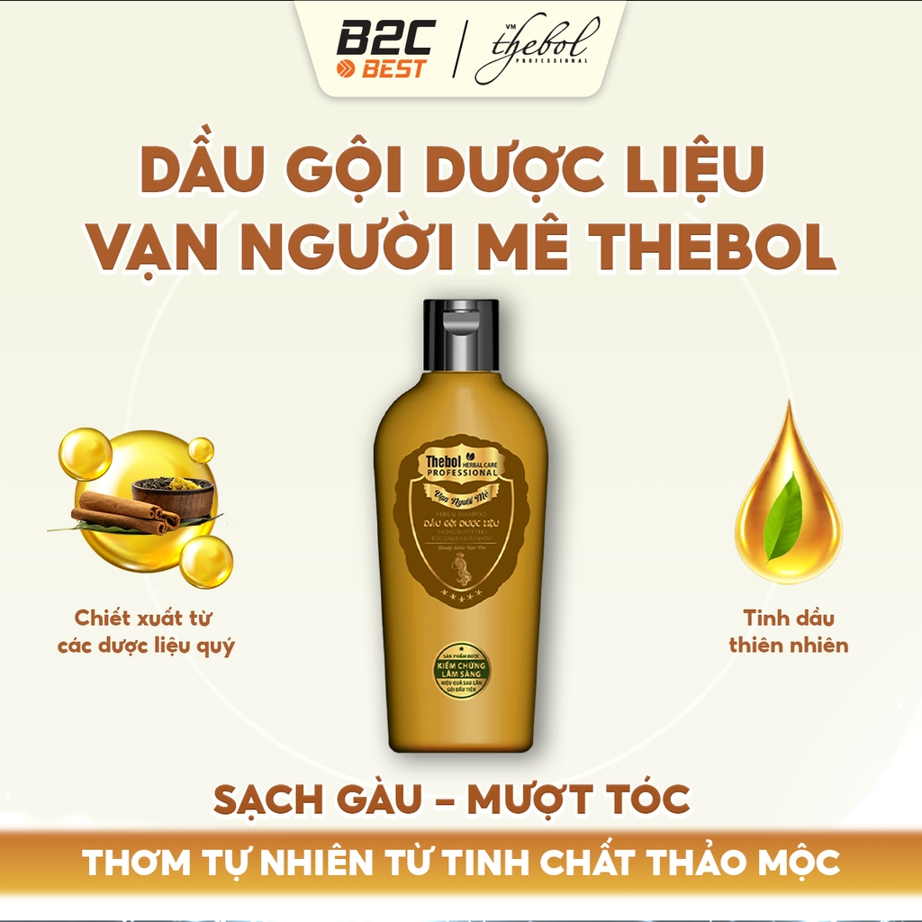 THEBOL Dầu Gội Dược Liệu (Sạch Gàu) là sản phẩm chăm sóc tóc cao cấp được chiết xuất từ các loại thảo dược tự nhiên kết hợp với công nghệ làm sạch hiện đại. Công thức đặc biệt giúp loại bỏ gàu, làm dịu da đầu, giảm ngứa và nuôi dưỡng mái tóc chắc khỏe từ gốc đến ngọn – phù hợp cho cả nam và nữ, đặc biệt là người có da đầu nhạy cảm hoặc nhiều gàu.