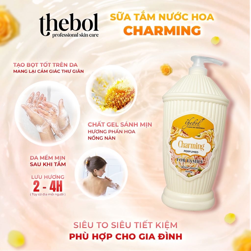Sữa tắm Thebol Charming đem đến mùi hương ngọt ngào, quyến rũ, giúp bạn trở thành tâm điểm trong mọi buổi tiệc. Công thức dịu nhẹ, thích hợp cho mọi loại da.