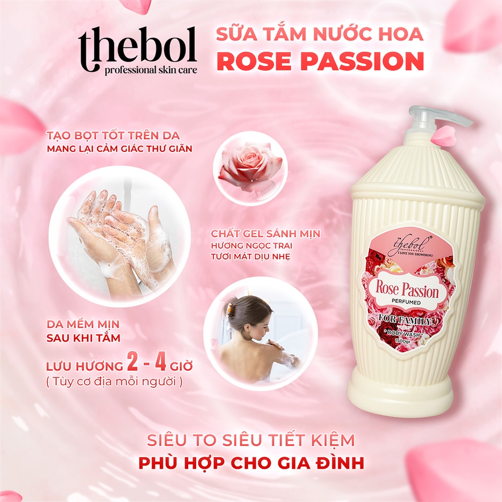 Sữa tắm Thebol hương nước hoa Rose Passion mang đến mùi hương lãng mạn và nồng nàn, giúp bạn tự tin cuốn hút trong từng khoảnh khắc. Công thức dịu nhẹ, an toàn cho mọi loại da.